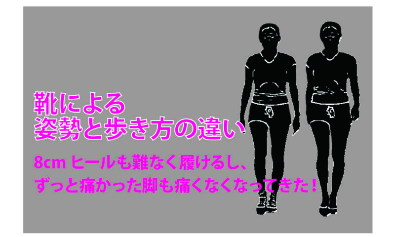 今回は、足に合った靴とそうでない靴の場合の姿勢と歩き方の違いを比較してみたいと思います。