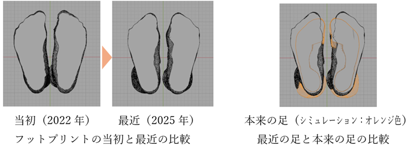 これまで弊社の靴をお使い頂きながら意識的に生活されていることもあって、当初の足と比較すると随分アーチができました。